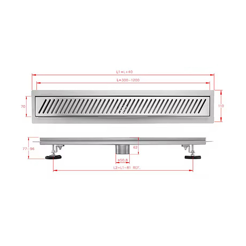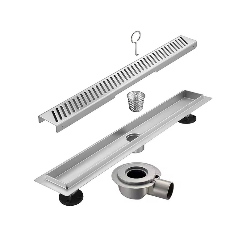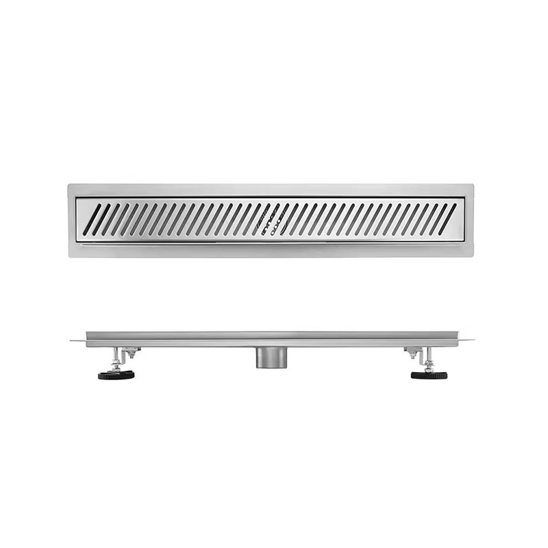 Hogar / Productos / Drenaje de piso / Brida de drenaje de ducha lineal moderna de acero inoxidable, 10 pulgadas, 360 grados, 304, colador de rejilla para baños de hoteles