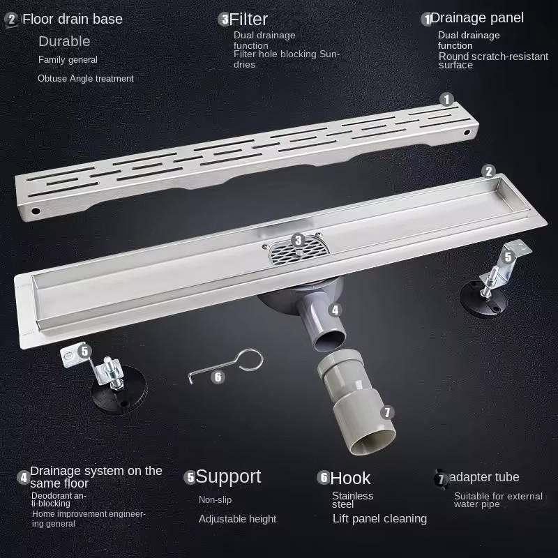 Hogar / Productos / Drenaje de piso / Brida de drenaje de ducha lineal moderna de acero inoxidable, 10 pulgadas, 360 grados, 304, colador de rejilla para bañeras y hoteles