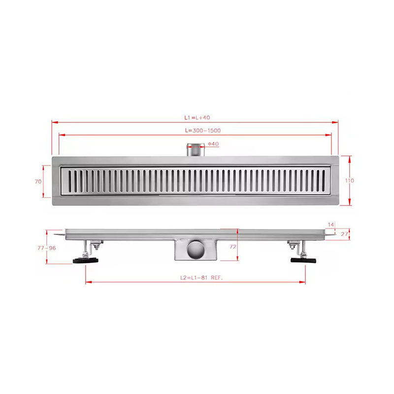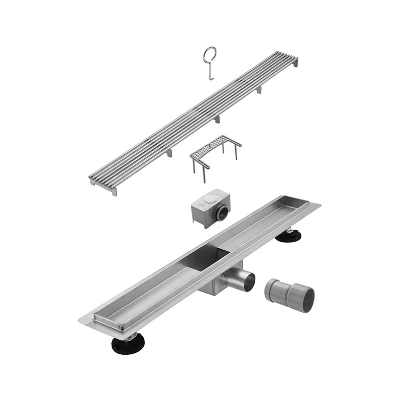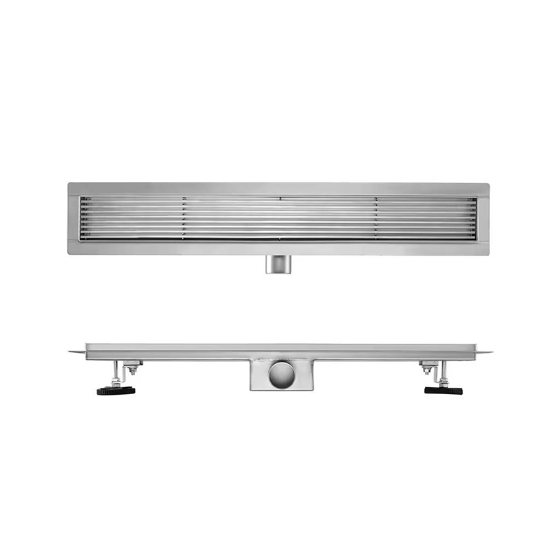 Hogar / Productos / Drenaje de piso / Desagüe lineal de ducha de acero inoxidable 304 de 20 pulgadas con rejilla de brida, colador de drenaje de piso lateral antiolor para bañera, baño de Hotel