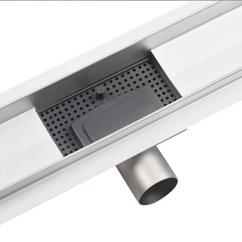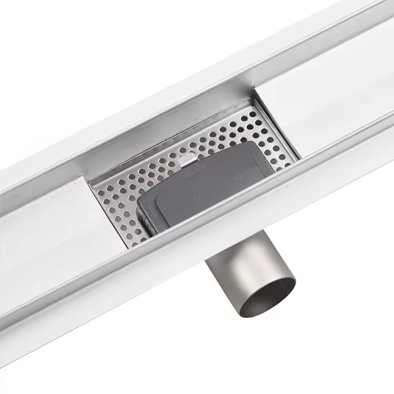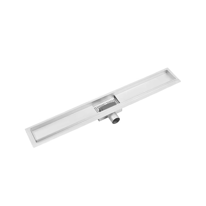 Hogar / Productos / Drenaje de piso / Brida de drenaje de ducha lineal de acero inoxidable 304 de 24 pulgadas, escurridores de suelo horizontales antiolor, salida lateral para el baño del Hotel en casa