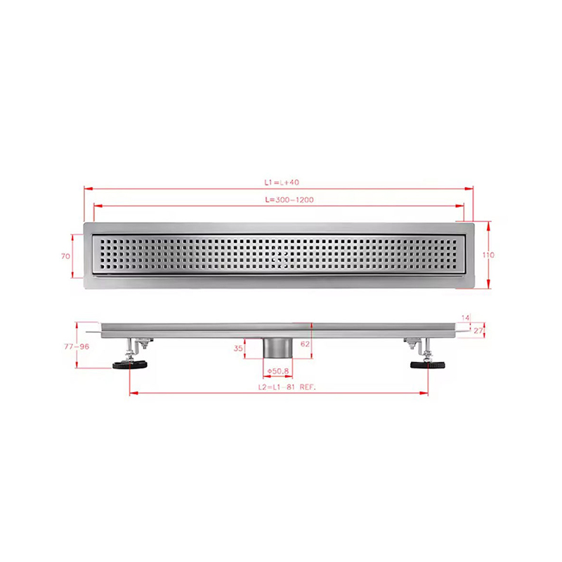Hogar / Productos / Drenaje de piso / Rejilla de brida de drenaje de ducha lineal de 360 ​​grados, filtro de pelo de 20 pulgadas, colador para el hogar, hoteles y baños, acero inoxidable 304 moderno